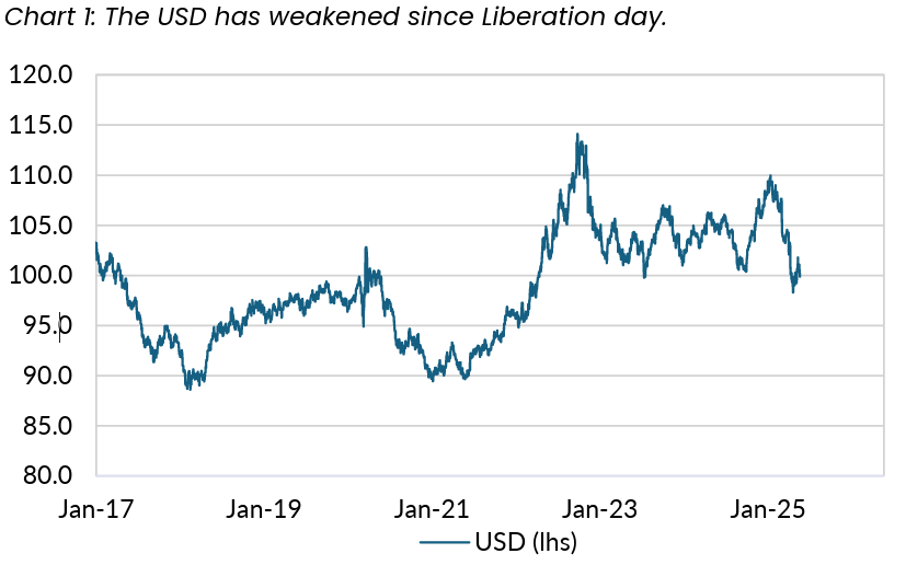 Global equity markets recovered their losses following the Liberation day announcements on tariffs. Sentiment improved markedly after President Trump backed down and either repealed or paused the implementation of the largest tariffs. Sentiment improved further after preliminary deals were announced with the UK and China.