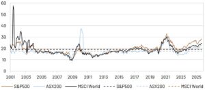 We continue to be sceptical that AI is a strong reason to accept structurally higher P/E ratios. Markets have been easily spooked when murmurs of an “AI bubble” reappear and the conversation shifts to whether AI can generate the productivity gains that it needs to justify current valuations. There is limited evidence currently that the adoption of AI will deliver sufficient profits to justify the scale of investments in its development. Equity markets have been whipsawed by these concerns, but then that is quickly forgotten, supported with a “buy-the-dip” mentality.