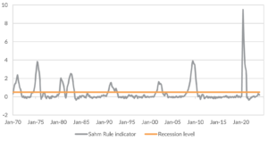 Chart 2: The Sahm rule has moved further away from the 0.5% that indicates recession.